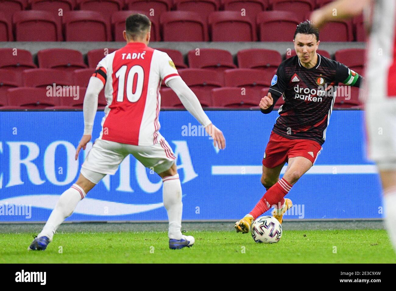 Amsterdam Netherlands January 17 Dusan Tadic Of Ajax Steven Berghuis Of Feyenoord During The Dutch Eredivisie Match Between Ajax And Feyenoord At Stock Photo Alamy